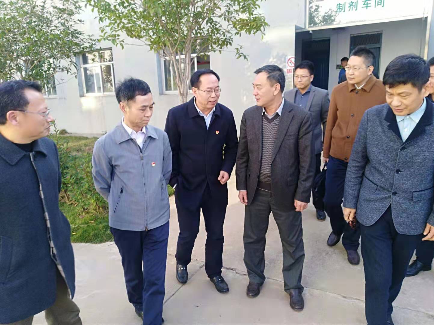 2019年11月19日下午,省市場監(jiān)督管理局王福平局長、省藥品生產(chǎn)監(jiān)督管理處劉斌處長,吉安市市場監(jiān)督管理局聶局長一行到我司參觀指導工作,公司董事長張愛江,副總經(jīng)理蔡生平,董秘嚴棋鵬陪同!
